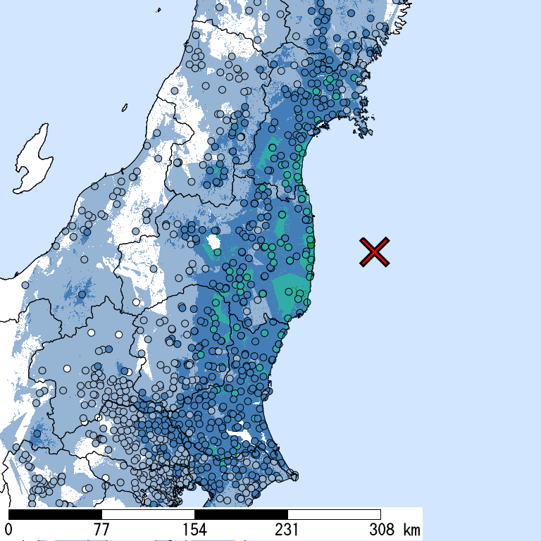 市区町村名 全て表示 | 全人口:夜間 (人) | 震央距離 (km) |