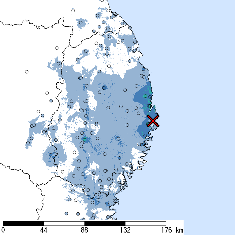 市区町村名 全て表示 | 全人口:夜間 (人) | 震央距離 (km) |