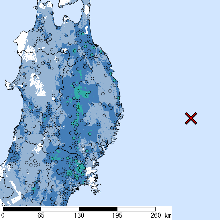 市区町村名 全て表示 | 全人口:昼間 (人) | 震央距離 (km) |