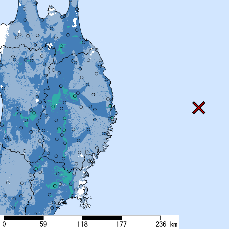 市区町村名 全て表示 | 全人口:昼間 (人) | 震央距離 (km) |