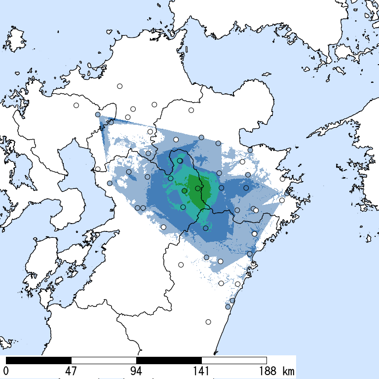 市区町村名 全て表示 | 全人口:夜間 (人) | 震央距離 (km) |