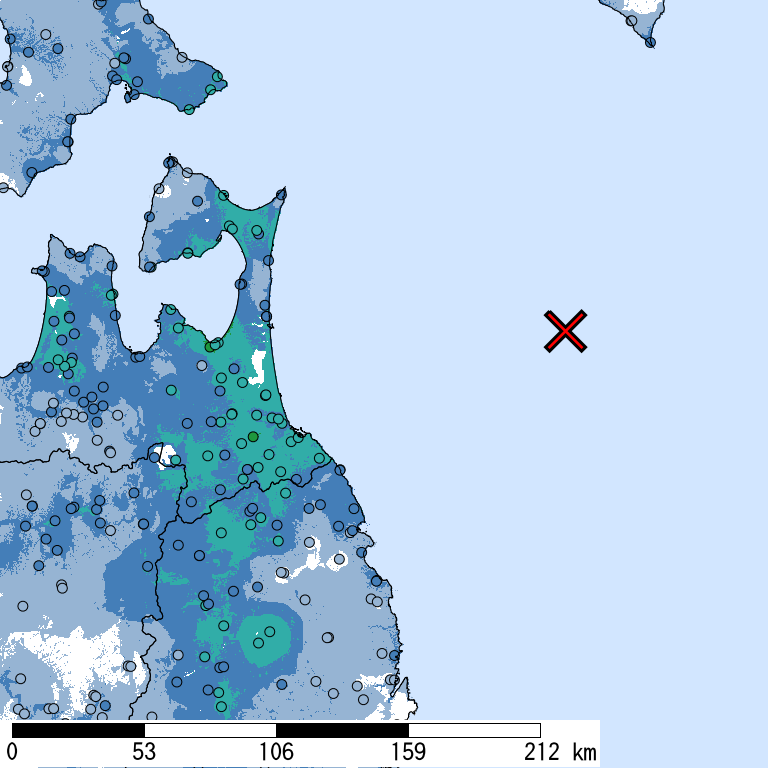 市区町村名 全て表示 | 全人口:夜間 (人) | 震央距離 (km) |