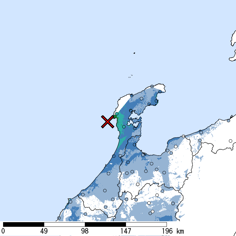 | 1952 | 石川県西方沖 (大聖寺沖地震) | 6.5 | 福井・石川両県で死7,家屋半壊4など.山崩れや道路の亀裂などもあった. |