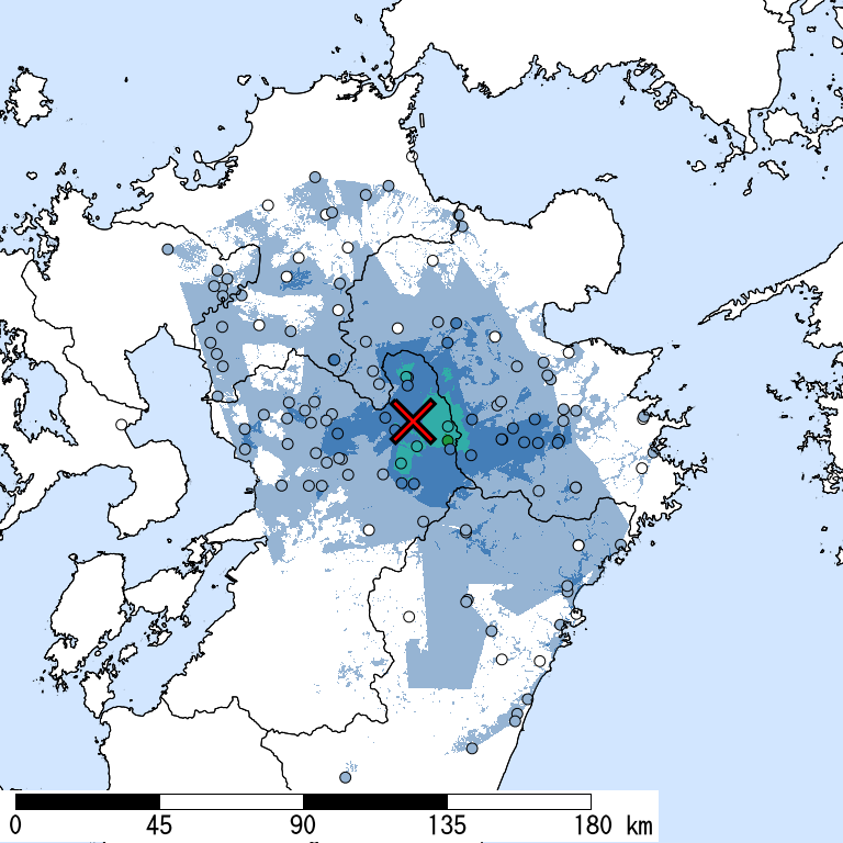 市区町村名 全て表示 | 全人口:夜間 (人) | 震央距離 (km) |