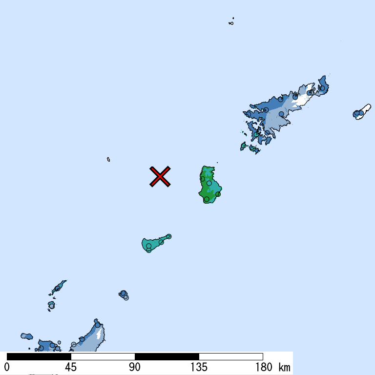 | 1911 | 奄美大島付近 (喜界島地震) | 8.0 | 有感域は中部日本に及び,喜界島・沖縄島・奄美大島に被害があった.死12,家屋全潰422.この地域最大の地震. |