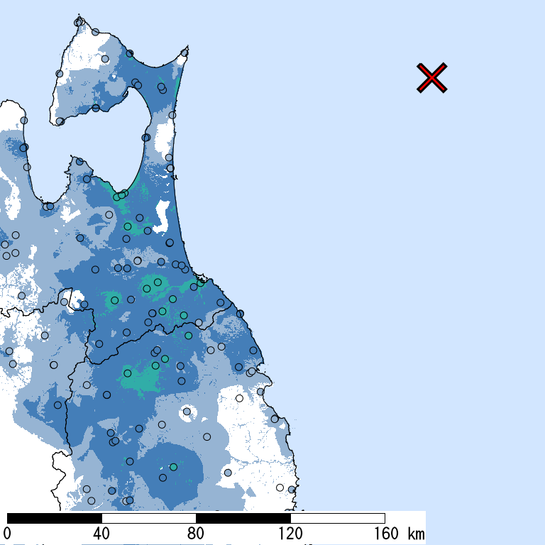 | 1858 | 八戸・三戸 | 7.3 | 八戸・三戸で土蔵・堤水門・橋など破損.青森・弘前・陸奥・田名部・鰺ヶ沢・秋田で強く感じた. |