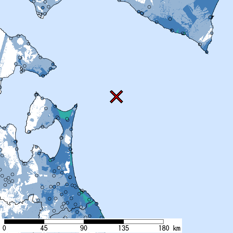 市区町村名 全て表示 | 全人口:夜間 (人) | 震央距離 (km) |