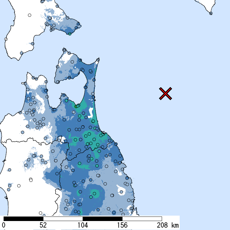 | 1858 | 八戸・三戸 | 7.3 | 八戸・三戸で土蔵・堤水門・橋など破損.青森・弘前・陸奥・田名部・鰺ヶ沢・秋田で強く感じた. |
