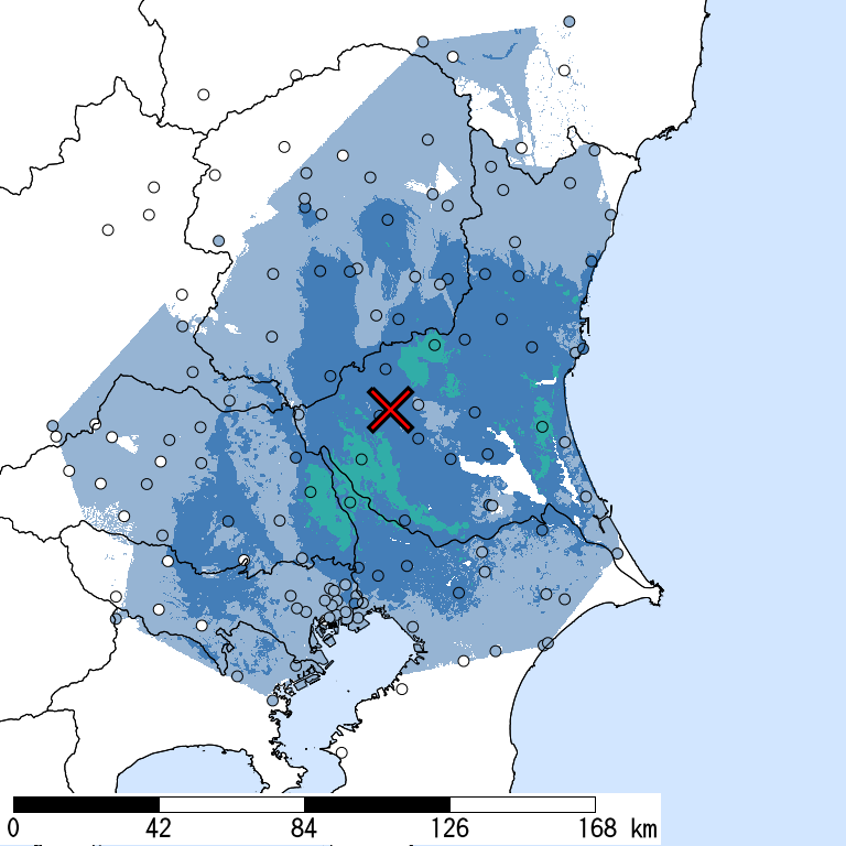 市区町村名 全て表示 | 全人口:昼間 (人) | 震央距離 (km) |