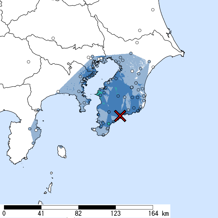 市区町村名 全て表示 | 全人口:昼間 (人) | 震央距離 (km) |