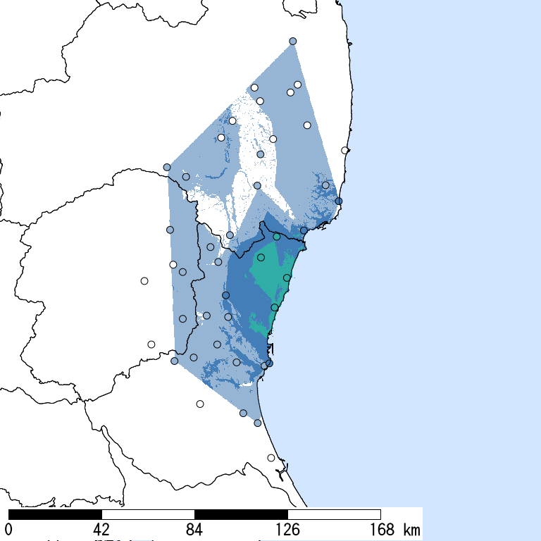 市区町村名 全て表示 | 全人口:昼間 (人) | 震央距離 (km) |