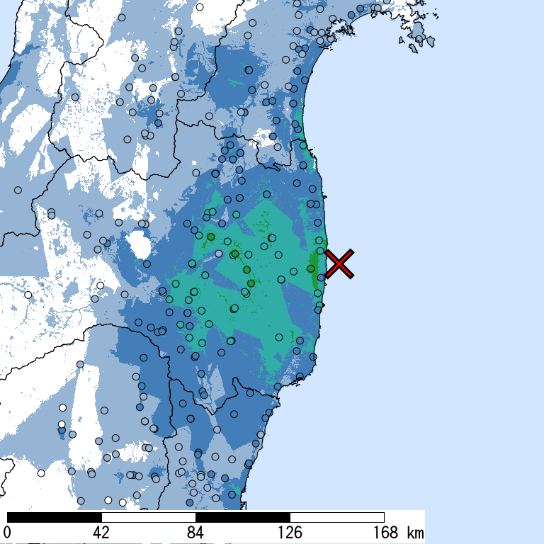 2011 宮城県沖 7.2 東北地方太平洋沖地震の震源域内の地震だが,太平洋プレートの逆断層型スラブ内地震(深さ66km).死4,傷296,住家全壊36以上,半壊27以上(消防庁・宮城県による;2016年3月現在).最大震度6強(宮城県仙台市・栗原市),6弱が宮城県15市町村,岩手県6市町.